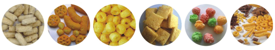 3. 產(chǎn)品: 各種形狀玉米膨化休閑小食品